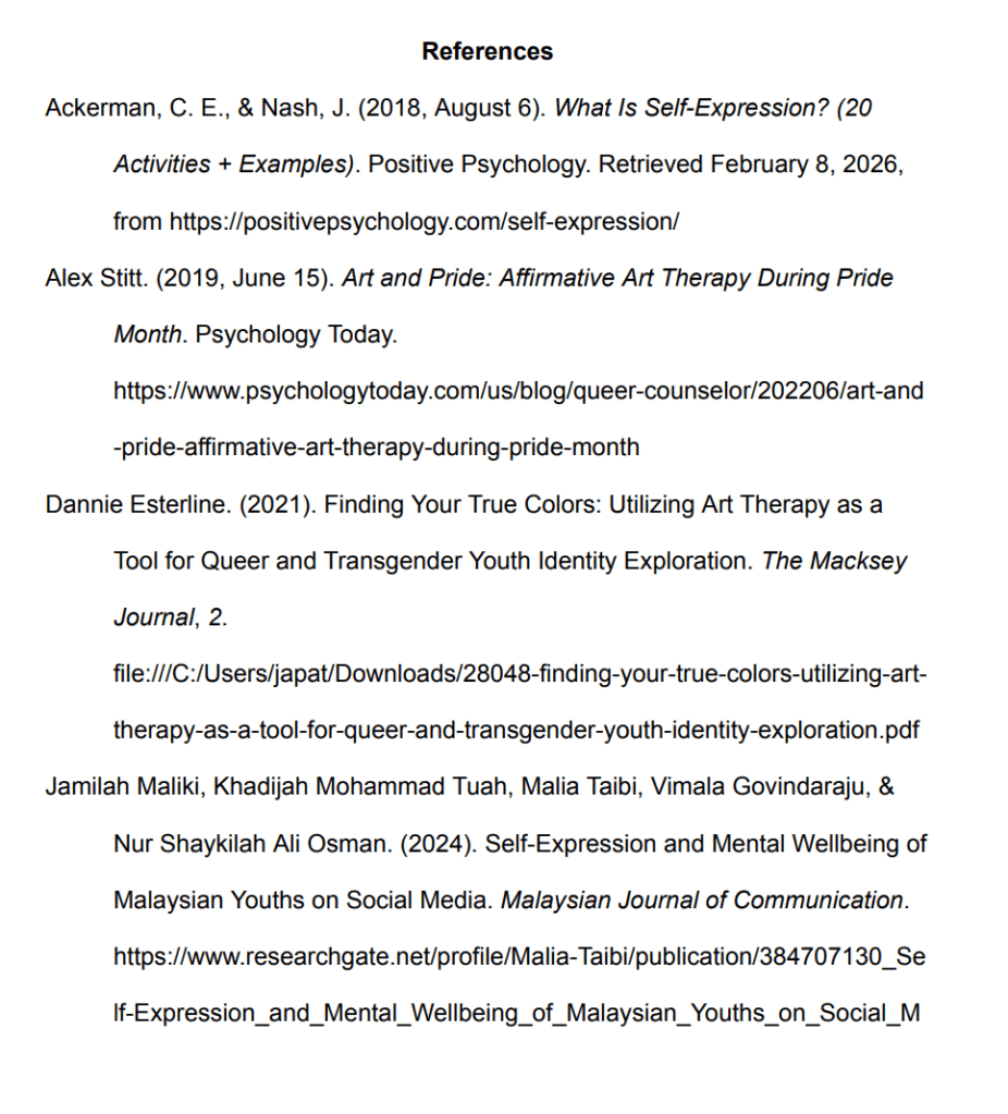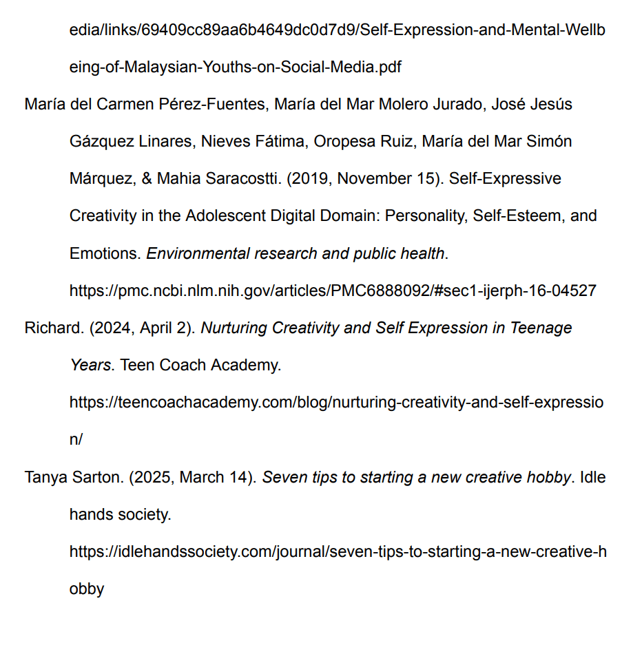 Studies done by (María del Carmen Pérez-Fuentes et al., 2019) and (Jamilah Maliki et al., 2024) focus on self expression particularly in the digital domain, providing fascinating insights on the effects of this tool as social media is an extremely accessible tool in today’s increasingly online world.